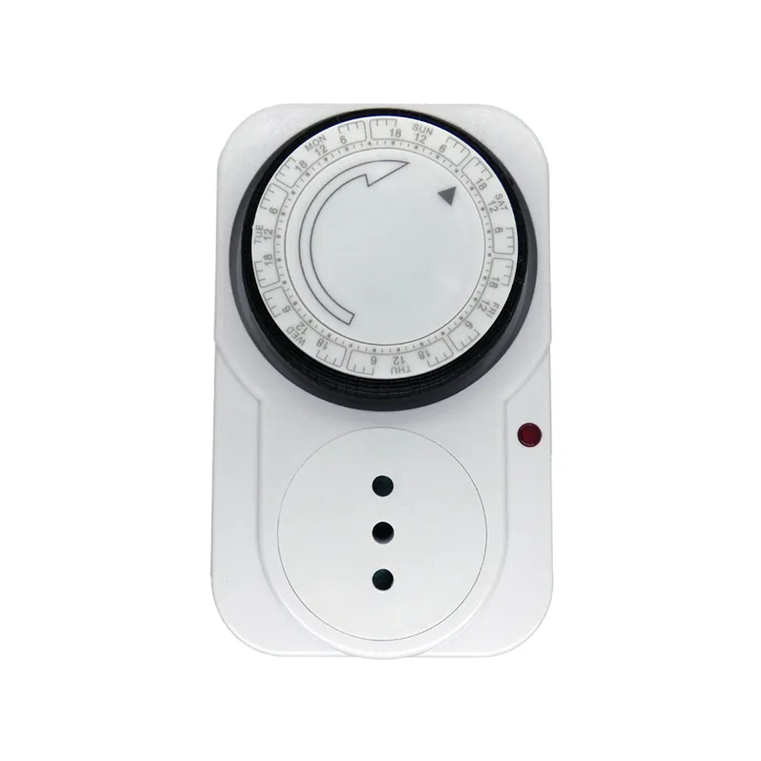 Automatiza el encendido y apagado de tus dispositivos eléctricos con el temporizador analógico semanal Macrotel, ideal para iluminación, electrodomésticos, sistemas de riego, acuarios y más. Su diseño de fácil programación permite configurar distintos horarios para cada día de la semana.